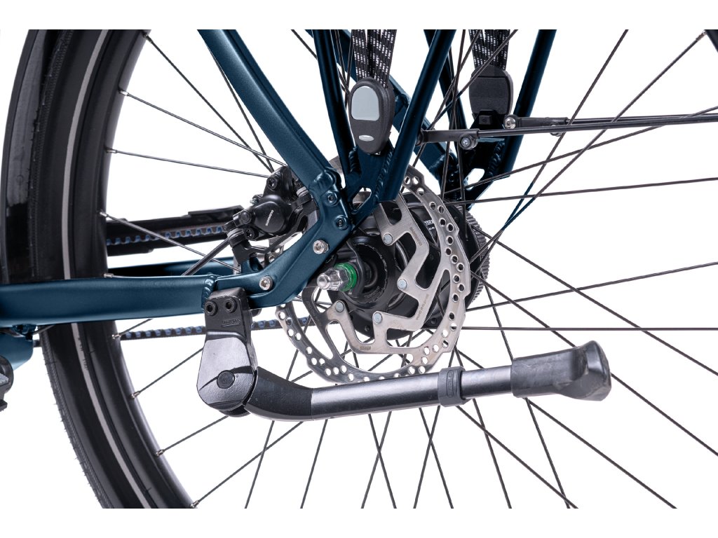 The combination of modern technology and sleek design makes this e-bike the ideal choice for everyday mobility in the city. The Motinova Volans motor provides smooth and efficient pedal assistance. Gearing with a Shimano Nexus 8 hub ensures smooth and intuitive shifting, while the maintenance-free Gates belt ensures quiet and clean operation. The handy luggage carrier and MIK HD mounting system make it easy to carry cargo. High-quality mudguards from German manufacturer SKS reliably protect against dirt, while Schwalbe tyres with reflective stripe and puncture protection ensure safety and comfort even on rough roads.